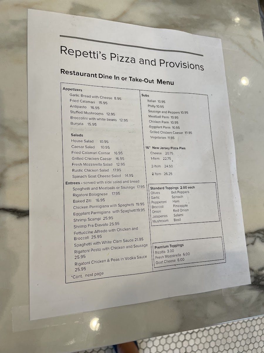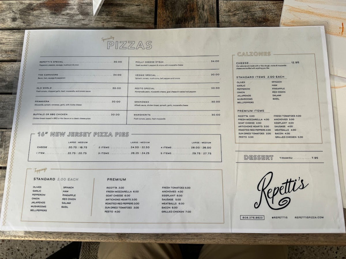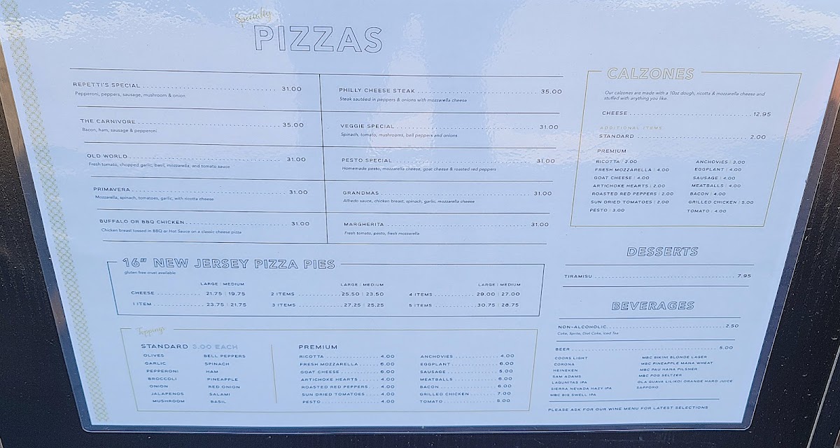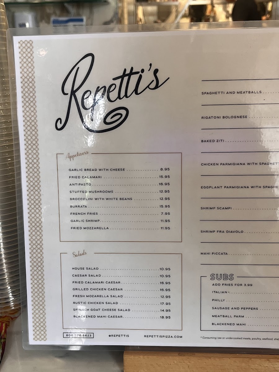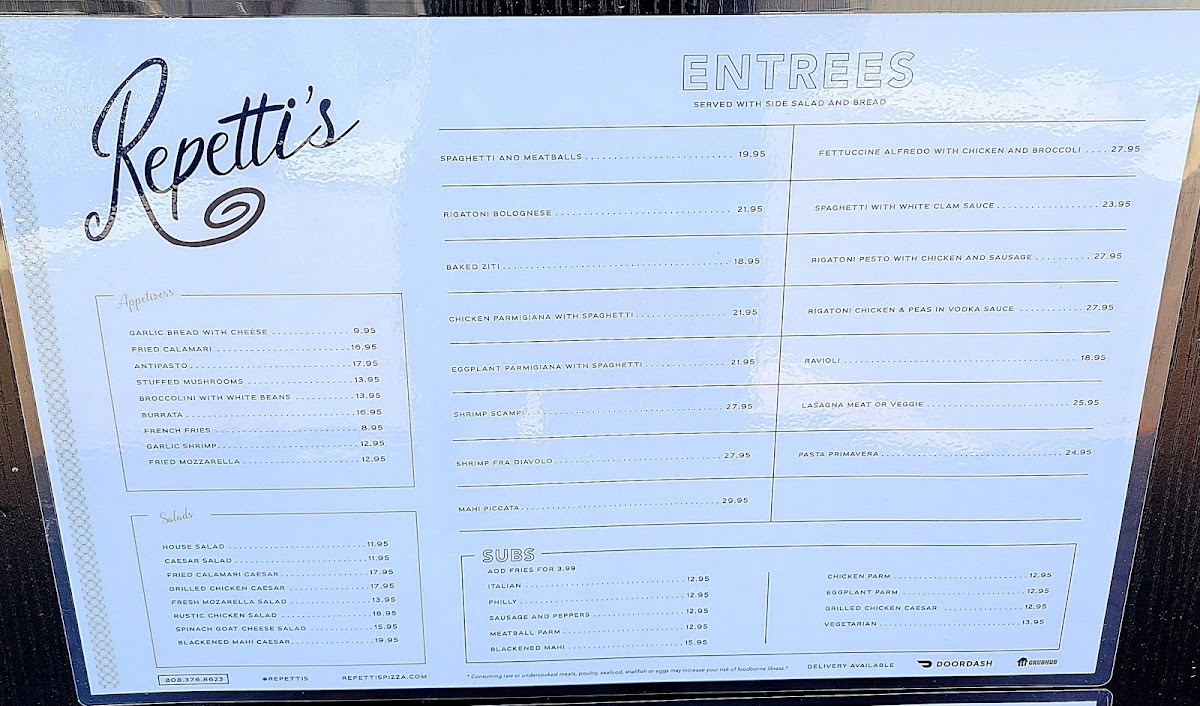 The menu at Repetti's Pizza and Provisions offers a straightforward yet satisfying selection of Italian-inspired dishes that fit perfectly with its relaxed, local vibe. This is a place where you can enjoy everything from classic comfort foods like Chicken Parmigiana and Spaghetti & Meatballs to house-made pizzas topped with fresh ingredients including pepperoni, olives, and mushrooms.